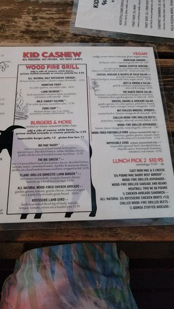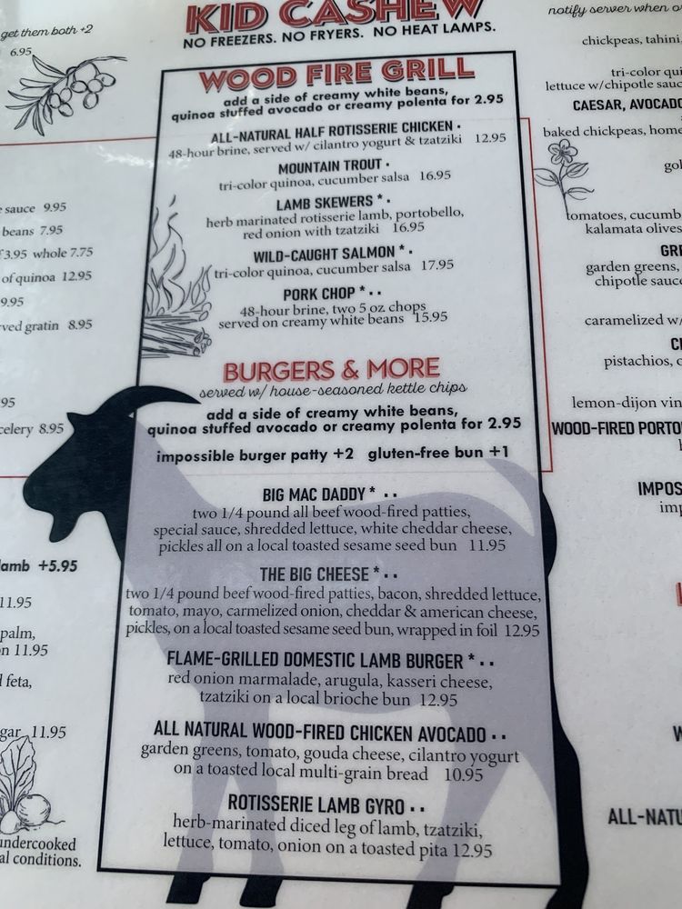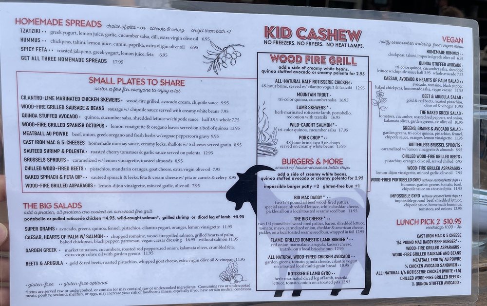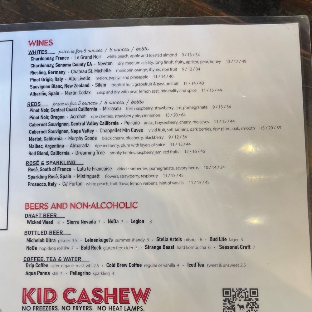 Introducing Kid Cashew, a Mediterranean-inspired restaurant located in Charlotte, NC. Known for its tapas-style small plates and wood-fired dishes, Kid Cashew offers a diverse menu with options for pescatarians, vegans, and vegetarians. Customers rave about the flavorful Meatballs au Poivre and Sauteed Brussel Sprouts, as well as the indulgent Mac Daddy Burger and Wood Fired Chicken Avocado Sandwich. The relaxing and trendy atmosphere, combined with excellent customer service, makes dining at Kid Cashew a delightful experience. With outdoor seating, happy hour specials, and a full bar, this restaurant is perfect for groups and family meals. Whether you're looking for a quick bite or a leisurely dinner, Kid Cashew is sure to impress with its creative dishes and welcoming ambiance.